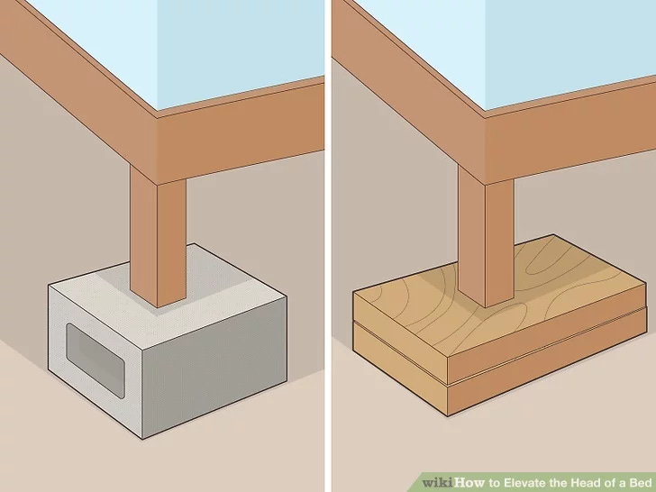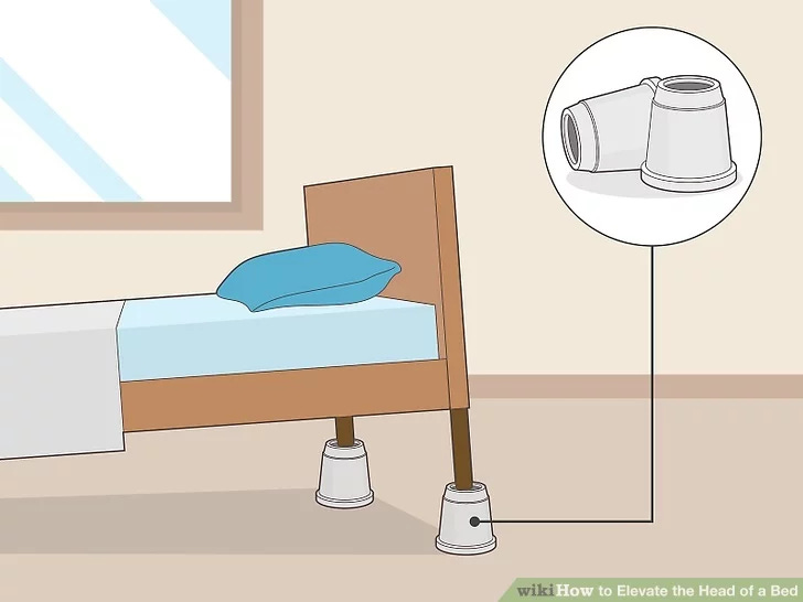 £ - Install bed risers to elevate one end of the bed. When you stick a bed foot into the riser, the foam insert will mold to the foot's shape. This reduces the chance of the bed slipping of the riser.